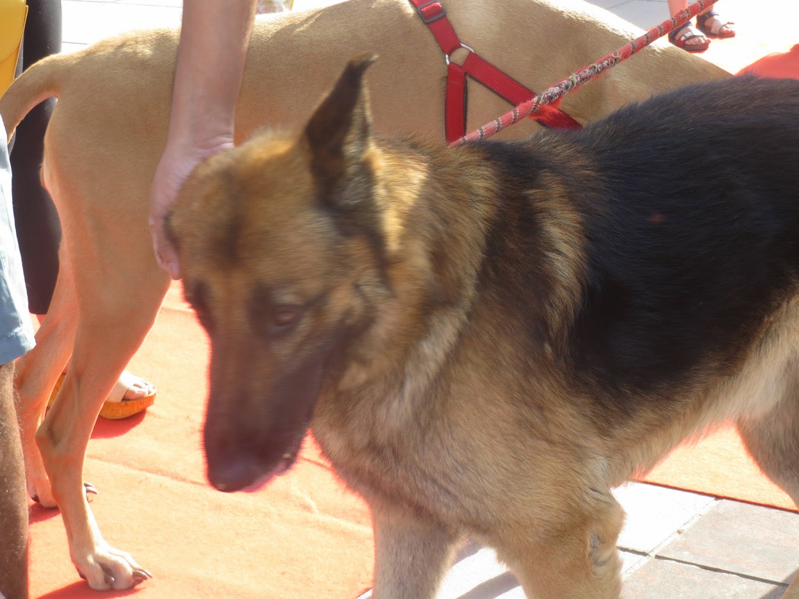 That is one long tongue! Lots of pups trying to keep cool. They had water stations, and fans blowing mist all over the place!